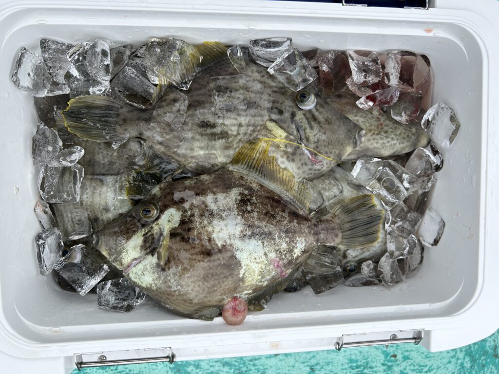 今シーズン初のカワハギで出船、潮は動かずもポツポツ釣れ、サイズは中型主体、お客様のご都合で9時半に終了!カワハギ14〜25cmを6〜14匹、他にサバ、エソ
