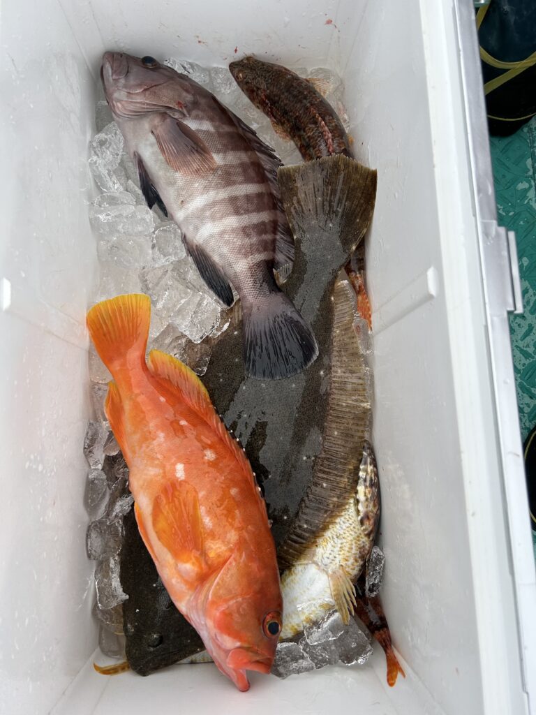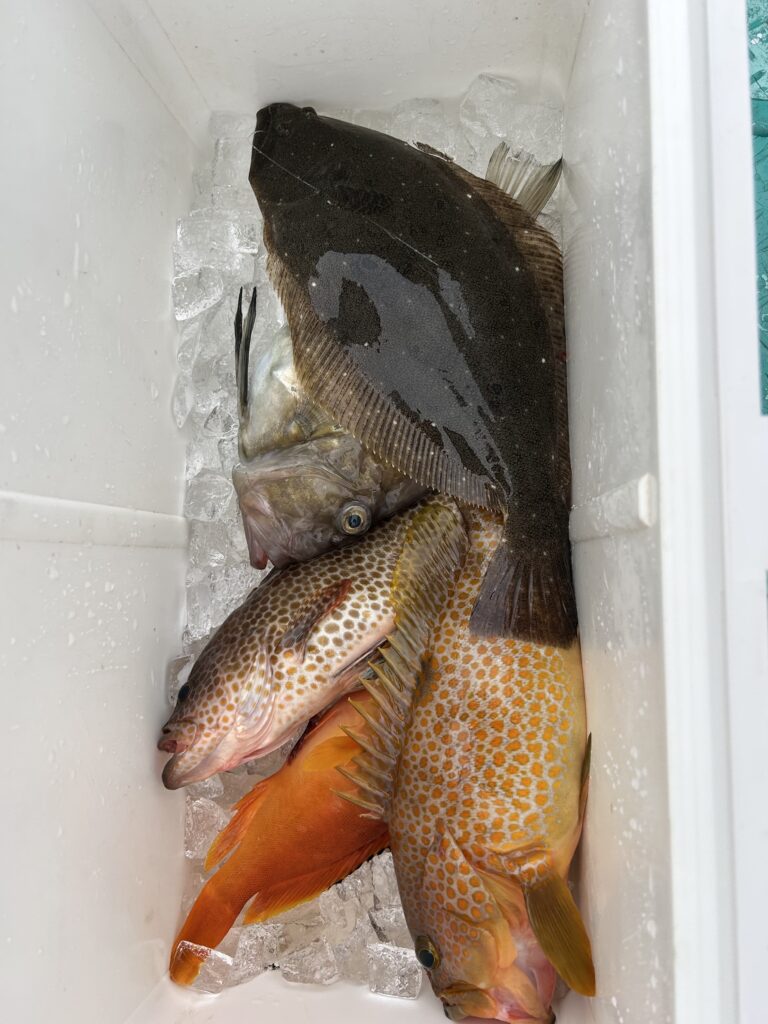 泳がせで出船!気温、釣果ともに寒かったです!朝一は潮流れもありましたがアタリ少なく、後半は移動多く撃沈丸でした!ヒラメ0.6〜0.8kgを2枚、マハタ、キジハタ、オオモンハタ、アカハタ、マトウダイ