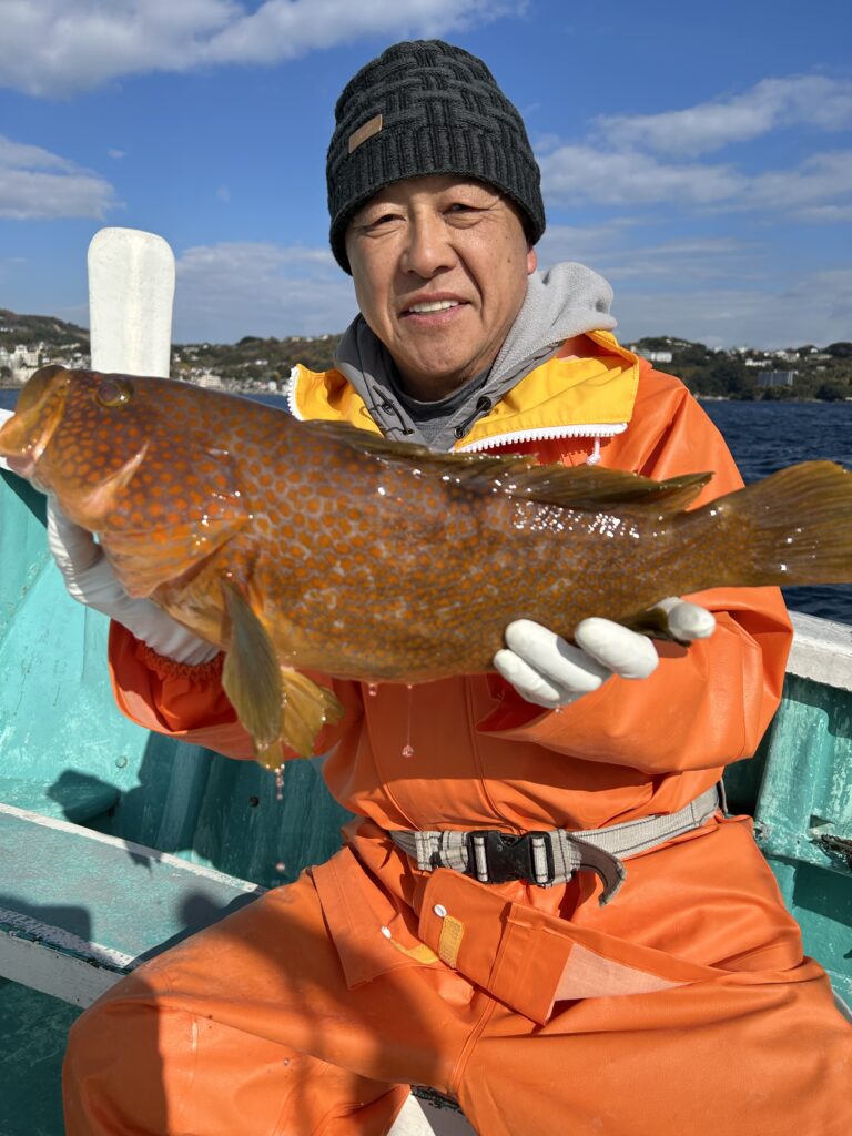 泳がせで出船、東方面へ行くも北東の風、ウネリで釣りにくかったので早めに福浦側へ、しかしアタリは少なかったです!寒い中頑張って頂きありがとうございました!ヒラメ1.2kgを1枚、キジハタ2kgを1匹、オオモンハタ1.8kgを1匹、ホウキハタ、アカハタ、アカヤガラ、ホウボウ、マトウダイ、カガミダイ
