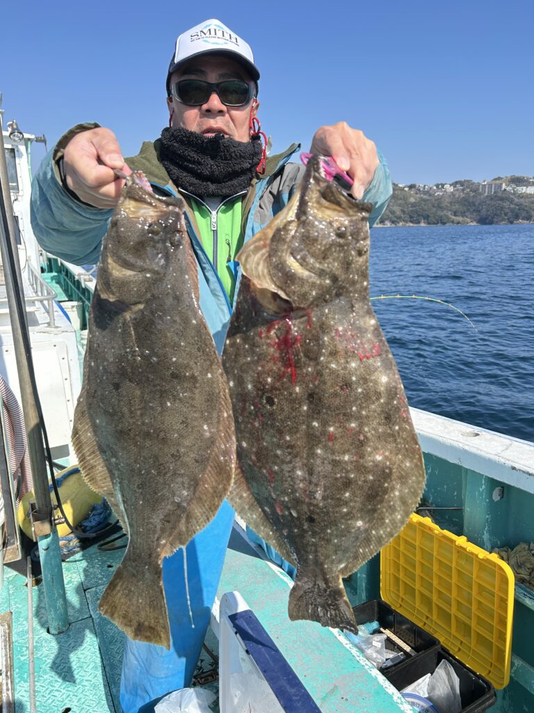 泳がせで出船、やや南西の風予報でしたが昼まで吹かなかったので良かったです(14時ぐらいから吹いてきました)、ヒラメ0.7〜2.3kgを3枚づつ(良型4枚)、マゴチ1.1〜1.4kgを3匹、ホウボウ